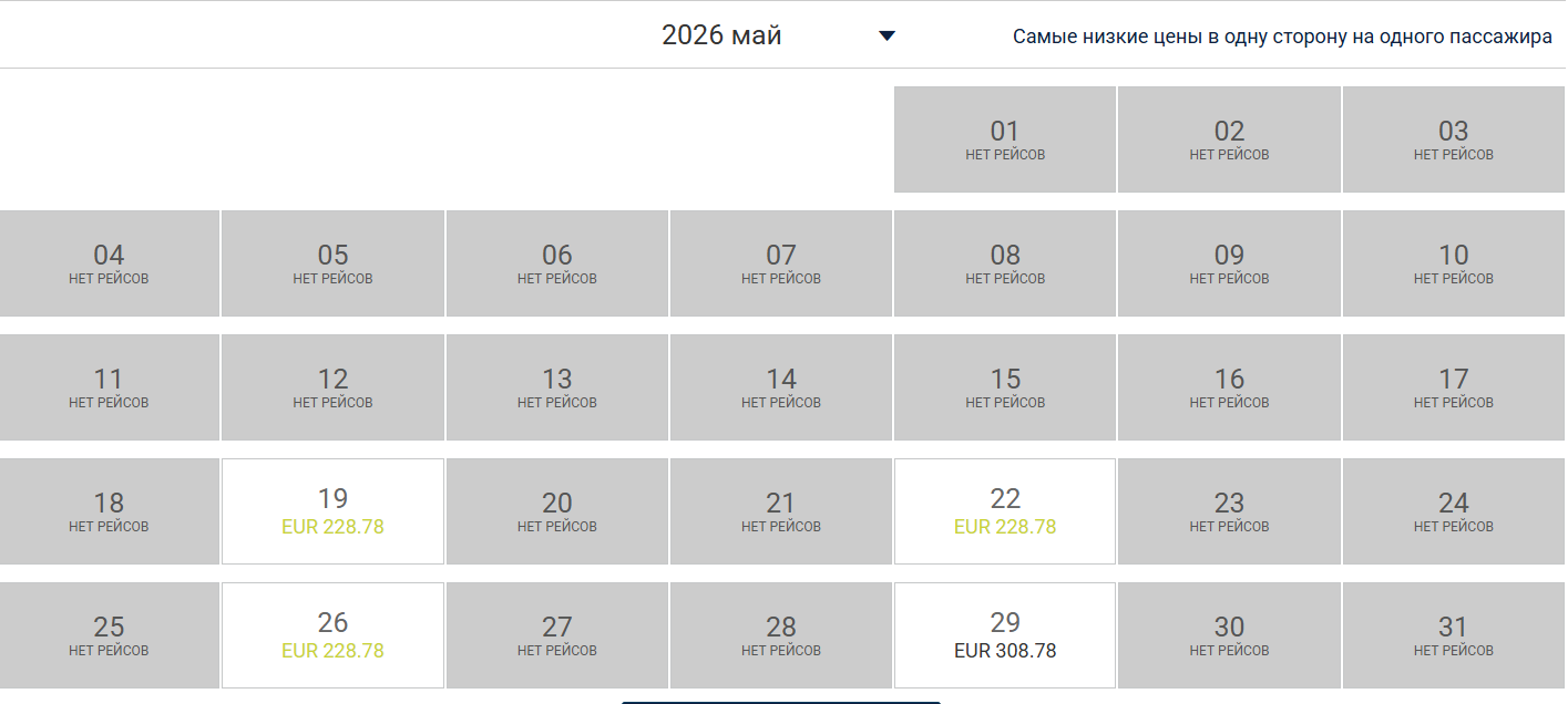 Полеты предполагается запустить 19 мая. Самолеты будут курсировать дважды в неделю — по вторникам и пятницам — в обоих направлениях.