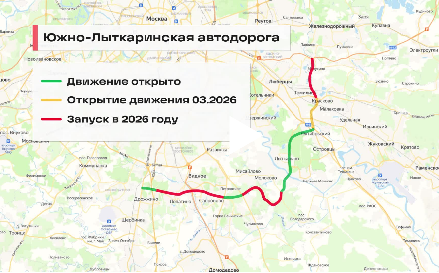 Новый участок сократил время пути из поселка Мирный до Люберец с 35-40 до 14 минут. Общая протяжённость ЮЛА составит около 45 км, проходя через Люберцы, Балашиху, Лыткарино и Ленинский округ, улучшая транспортную доступность для более 3,5 млн человек.