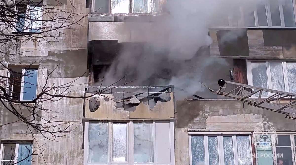 В результате происшествия выгорело имущество на балконах пятого и шестого этажей. По предварительным данным, пострадавших нет.