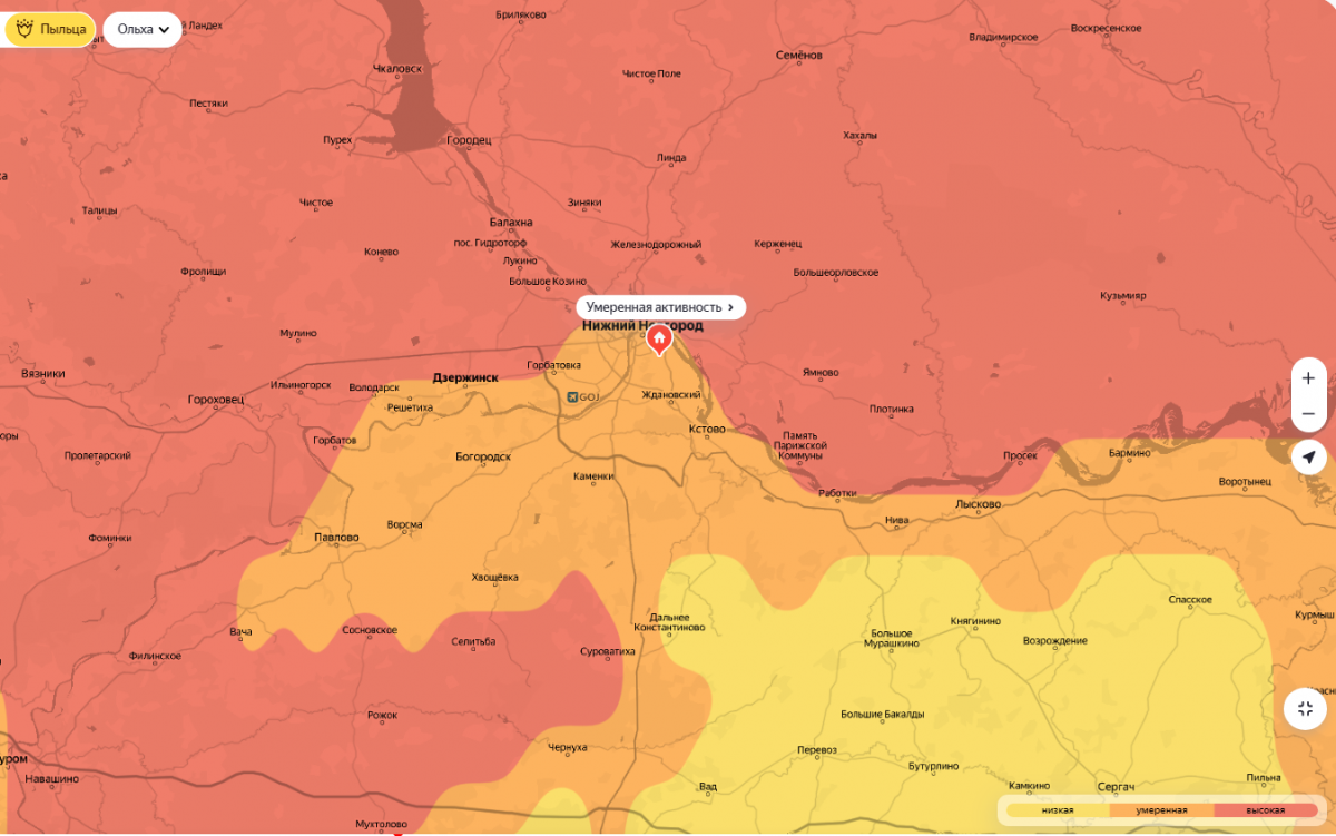 В Нижегородской области началось цветение ольхи, о чём свидетельствуют данные Карты пыльцы от Яндекса.