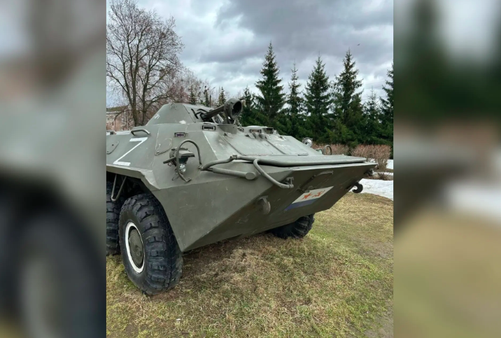 По его словам, на корпусе бронетранспортера, установленного у здания администрации, появилась матерная надпись. БТР размещен на постаменте с российским флагом и буквой "Z" на боку.