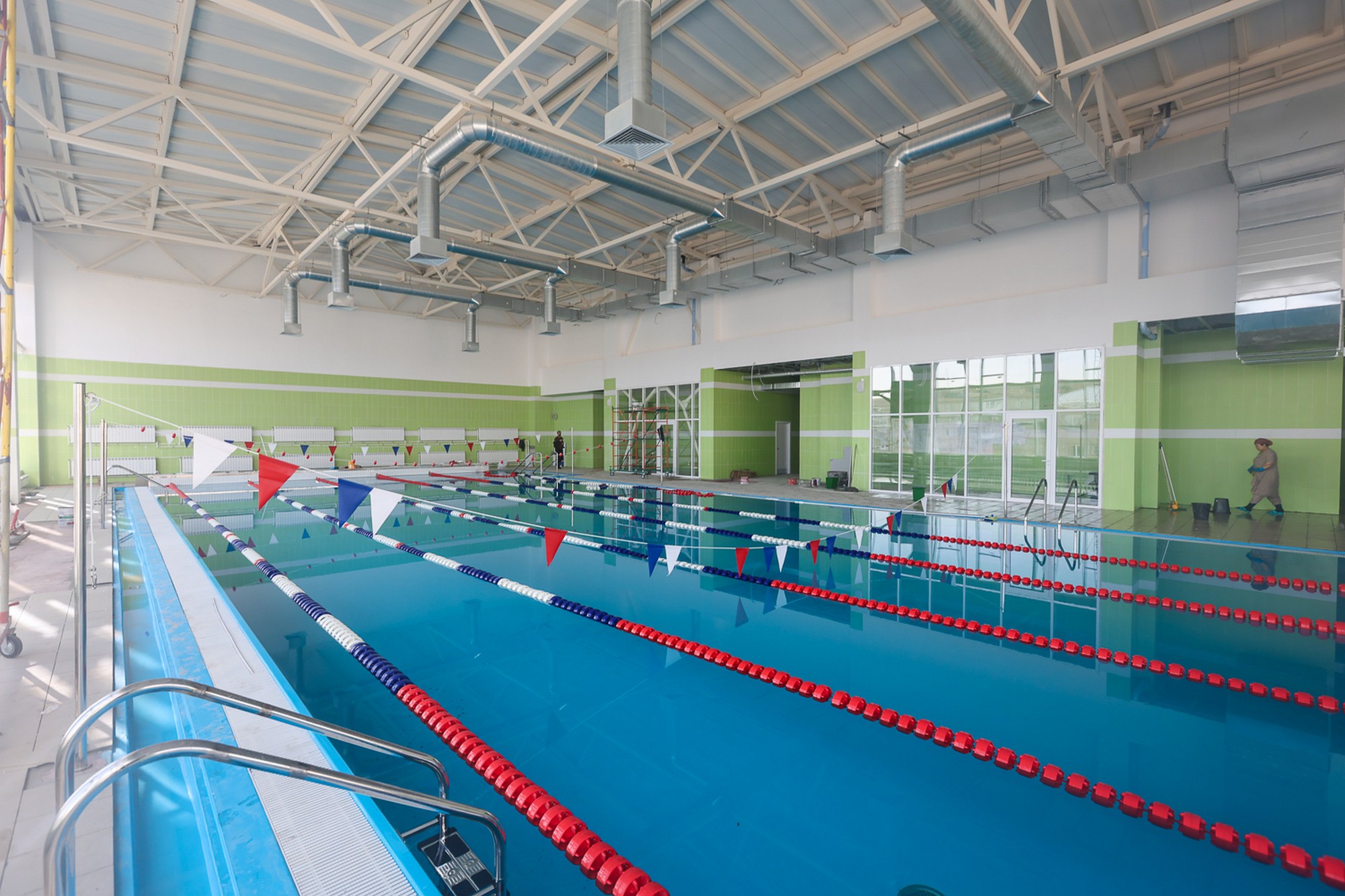 Строительные работы полностью завершены, а все необходимое оборудование уже поставлено в школу.