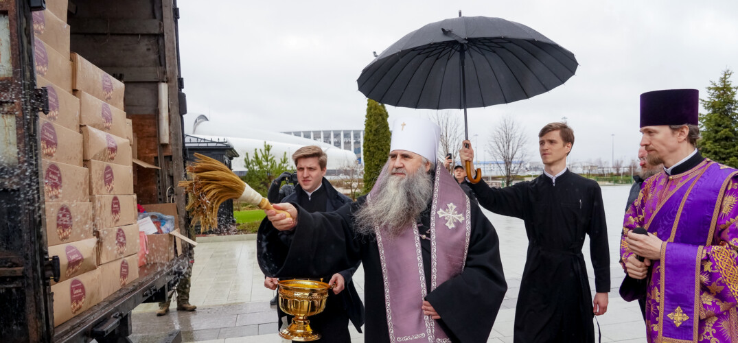 Перед освящением митрополит Георгий обратился к собравшимся. Он отметил, что куличи и пасхальные поздравления направляются "от всей Нижегородской земли", добавив, что жители региона переживают за военнослужащих, молятся за них и ждут их возвращения.