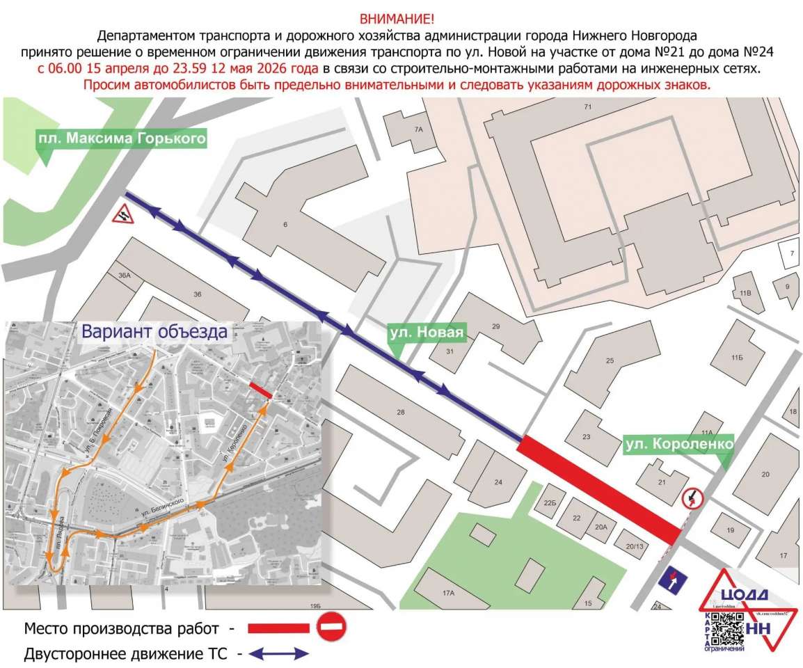 В Нижнем Новгороде перекроют улицу Новую из-за ремонта сетей с 15 апреля. Об этом сообщили в АО "Объединенный коммунальный оператор".