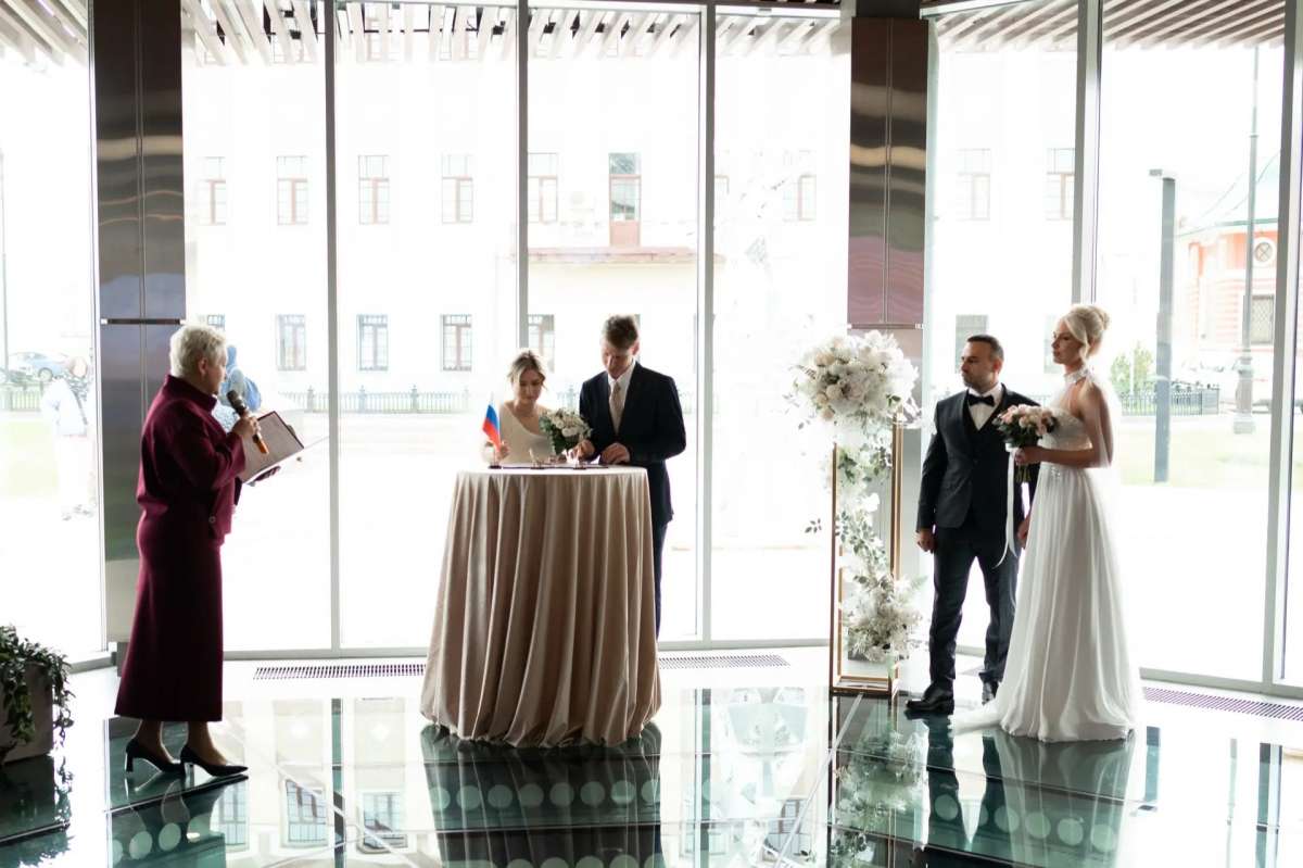 После церемонии молодожены возложили цветы к памятнику князю Дмитрию Донскому и его супруге княгине Ефросинье — почитаемым покровителям брака и семьи. Завершением свадебного дня стало таинство венчания в храме во имя святителя и чудотворца Николая при Манеже Нижегородского кремля.